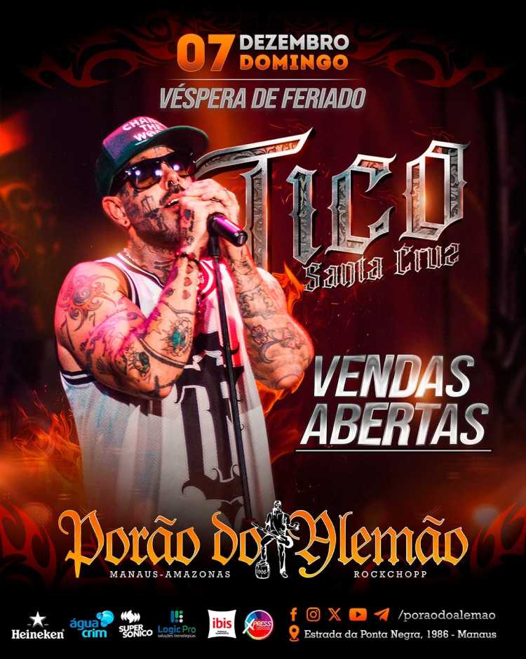 🔥 ELE TÁ DE VOLTA! 🔥 @ticostacruz chega chegando no palco do Porão no dia 07 de dezembro (domingo), véspera de feriado, aquele jeitinho que a gente gosta 🤘 E tem mais: quem acompanha o cantor nessa noite poderosa é a banda @bandajezz , garantindo um som de altíssimo nível! 🎶⚡ Os ingressos já estão disponíveis via Sympla (link na bio e nos stories)! Corre garantir o teu antes que esgote! ⚡ . . .
